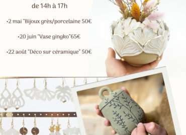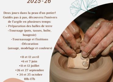 Retrouvez le programme des ateliers modelage et tournage des vacances scolaires sur ce site dans la rubrique « Planning des vacances et Actus ».